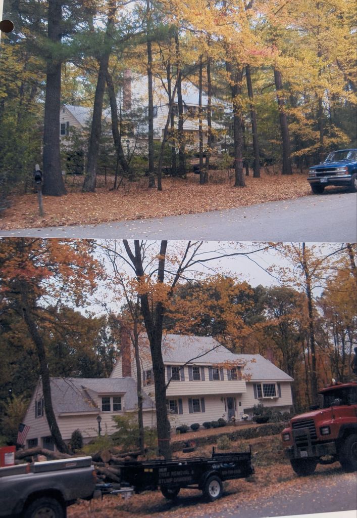 3B Tree Removal before and after of getting hazardous trees away from the house. Call me if you need some work. 603-759-4606